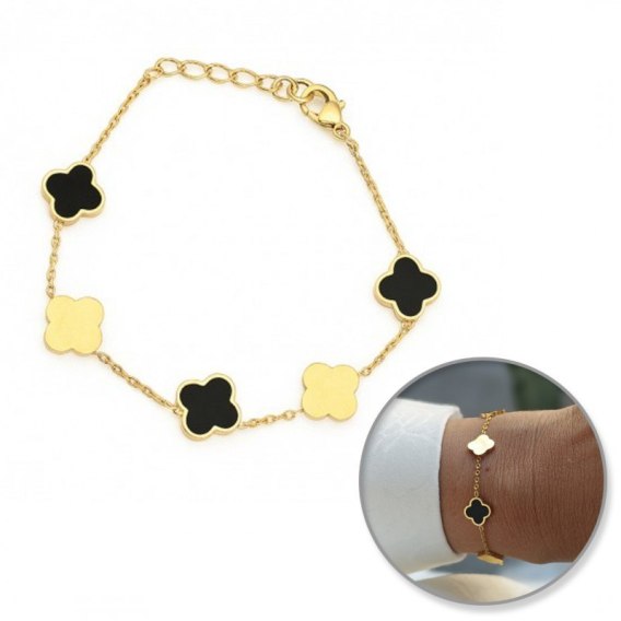 Bransoletka na rękę stal chirurgiczna pozłacana 14k złotem Koniczynki BST1552