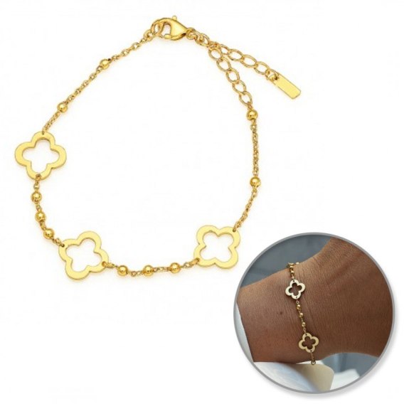 Bransoletka na rękę stal chirurgiczna pozłacana 14k złotem Koniczynki BST1556
