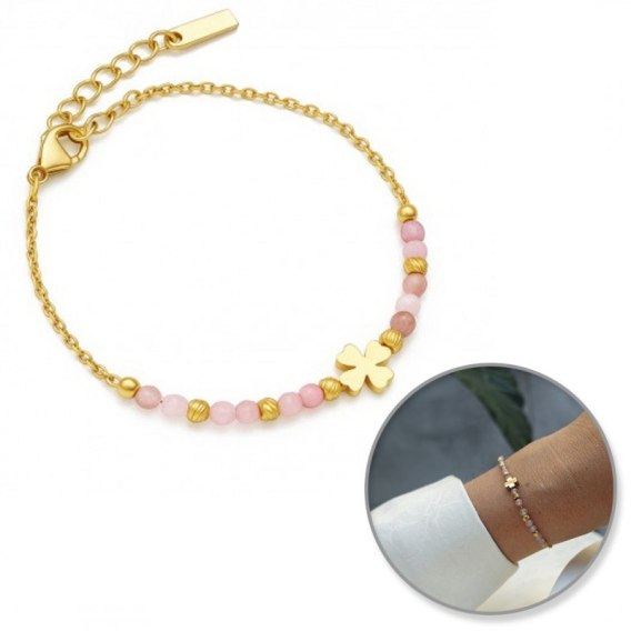 Bransoletka na rękę stal chirurgiczna pozłacana 14k złotem, Koniczynki, kamienie BST1545