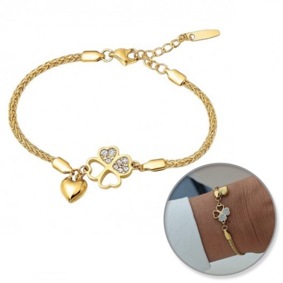 Bransoletka na rękę stal chirurgiczna pozłacana 14k złotem SERCA, Koniczynka BST1550