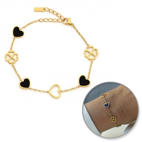 Bransoletka na rękę stal chirurgiczna pozłacana 14k złotem SERCA, Koniczynki BST1551