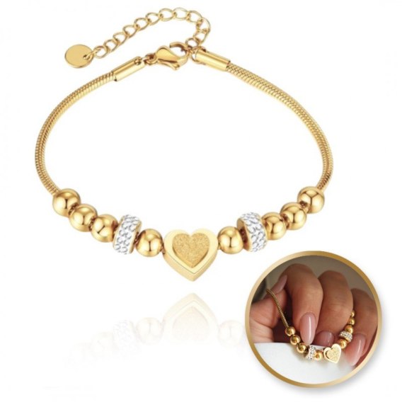 Bransoletka na rękę stal chirurgiczna pozłacana 14k złotem SERCE BST1521