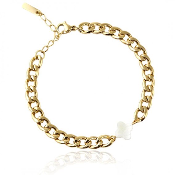 Bransoletka na rękę stal chirurgiczna pozłacana 14k złotem, koniczynka BST1540
