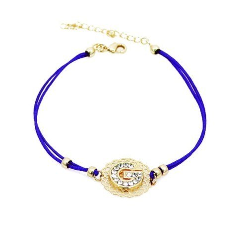 Bransoletka na niebieskim sznurku z efektowną ozdobą z cyrkoniami      * Pokryte jest w całości 4 - 8 mikronową warstwą 14K, 18K i 24K złota. * Warstwa złocenia pokryta jest lakierem jubilerskim, który zabezpiecza powłokę złota przed ścieraniem i nadaje wspaniały połysk * Biżuteria wykonana ze stali szlachetnej-należy do grupy stali o strukturze austenitycznej ( podobna chirurgiczna 316 L) : - jest hipoalergiczna i nie uczula, ponieważ nie emituje związków niklu do organizmu - nie koroduje, nie odbarwia się i długo cieszy swoim blaskiem - ścieralność uzależniona od noszenia i od pH ciała - nie wymaga specjalnej konserwacji jak biżuteria ze srebra, czy złota Ze względu na różne ustawienia monitorów oraz różną jakość wyświetlaczy zastosowanych w urządzeniach mobilnych, kolory przedstawione na zdjęciach mogą nieznacznie różnić się od rzeczywistych. Dokładamy wszelkich starań, aby na stronie Sklepu przedstawiać tylko realne zdjęcia produktów, jak najbardziej zbliżone do rzeczywistości.