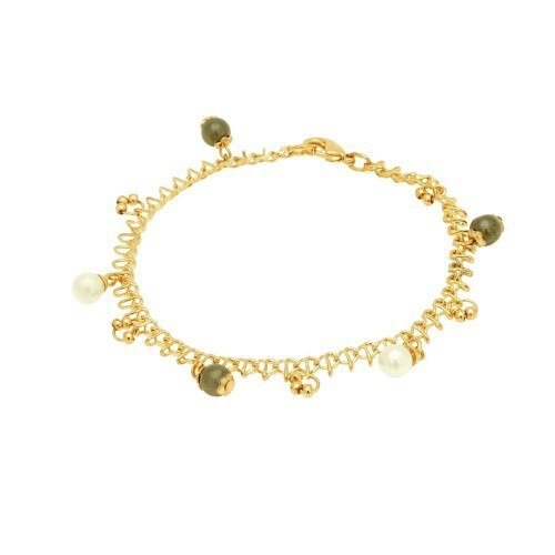 Bransoletka pozłacana z ozdobami typu koraliki Stal szlachetna pozłacana. Gwarancja pozłocenia i jakości. Warstwa złota naniesiona w metodzie - PVD- napylanie próżniowe jonami tytanu, czy też azotkiem tytanu jest nowoczesną metodą nanoszenia powłok o bardzo dużej trwałości. * Pokryte jest w całości 4 - 8 mikronową warstwą 14K, 18K i 24K złota. * Warstwa złocenia pokryta jest lakierem jubilerskim, który zabezpiecza powłokę złota przed ścieraniem i nadaje wspaniały połysk * Biżuteria wykonana ze stali szlachetnej-należy do grupy stali o strukturze austenitycznej ( podobna chirurgiczna 316 L) : - jest hipoalergiczna i nie uczula, ponieważ nie emituje związków niklu do organizmu - nie koroduje, nie odbarwia się i długo cieszy swoim blaskiem - ścieralność uzależniona od noszenia i od pH ciała - nie wymaga specjalnej konserwacji jak biżuteria ze srebra, czy złota Ze względu na różne ustawienia monitorów oraz różną jakość wyświetlaczy zastosowanych w urządzeniach mobilnych, kolory przedstawione na zdjęciach mogą nieznacznie różnić się od rzeczywistych. Dokładamy wszelkich starań, aby na stronie Sklepu przedstawiać tylko realne zdjęcia produktów, jak najbardziej zbliżone do rzeczywistości.