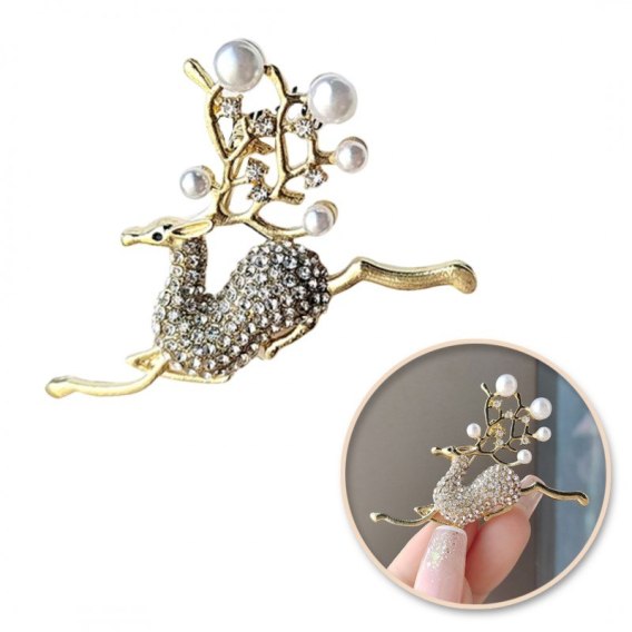 Broszka ozdobna kryształki BIAŁY JELONEK BZ178