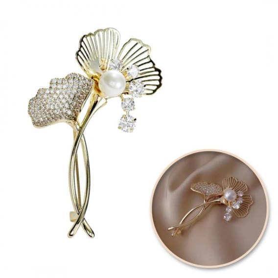 Broszka ozdobna - miłorząb z cyrkoniami BZ215