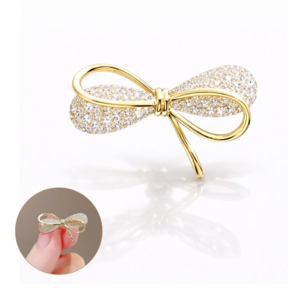 Broszka ozdobna - złota KOKARDA, cyrkonie BZ234