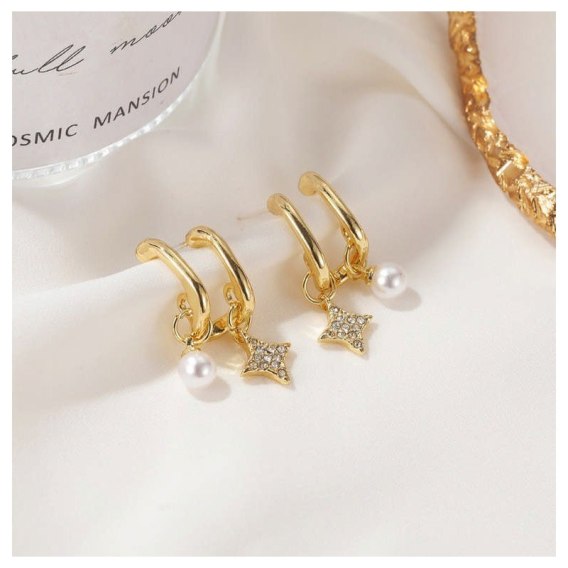 Kolczyki wiszące podwójne ozdobione stylowymi kryształkami i perełkami