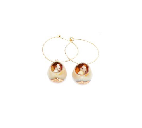 Kolczyki koła z ozdobą w kształcie muszelki. Długość 5 cm, szerokość 2,5 cm    Warstwa złota naniesiona w metodzie electroplated * Pokryte jest w całości 4 - 8 mikronową warstwą 14K, 18K i 24K złota * Warstwa złocenia pokryta jest lakierem jubilerskim, który zabezpiecza powłokę złota przed ścieraniem i nadaje wspaniały połysk * Biżuteria wykonana ze stali szlachetnej-należy do grupy stali o strukturze austenitycznej ( podobna chirurgiczna 316 L) : - jest hipoalergiczna i nie uczula, ponieważ nie emituje związków niklu do organizmu - nie koroduje, nie odbarwia się i długo cieszy swoim blaskiem - ścieralność uzależniona od noszenia i od pH ciała - nie wymaga specjalnej konserwacji jak biżuteria ze srebra, czy złota Ze względu na różne ustawienia monitorów oraz różną jakość wyświetlaczy zastosowanych w urządzeniach mobilnych, kolory przedstawione na zdjęciach mogą nieznacznie różnić się od rzeczywistych. Dokładamy wszelkich starań, aby na stronie Sklepu przedstawiać tylko realne zdjęcia produktów, jak najbardziej zbliżone do rzeczywistości.