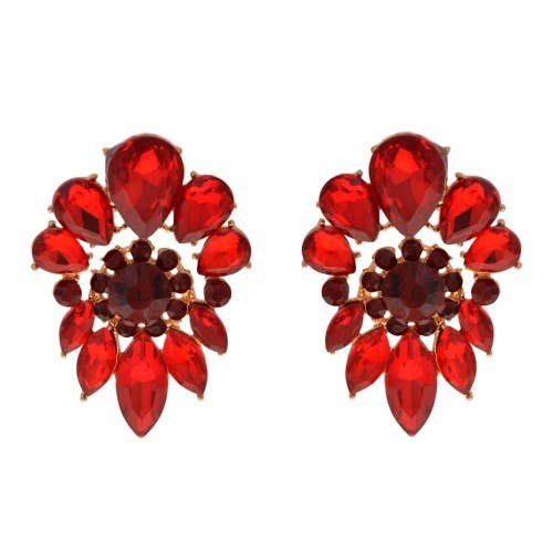 Kolczyki pozłacane, ozdobne,  w kształcie kwiatka , wysadzane cyrkoniami w kolorze czerwonym. Długość 4,0 cm, szerokość 3,0 cm   Ze względu na różne ustawienia monitorów oraz różną jakość wyświetlaczy zastosowanych w urządzeniach mobilnych, kolory przedstawione na zdjęciach mogą nieznacznie różnić się od rzeczywistych. Dokładamy wszelkich starań, aby na stronie Sklepu przedstawiać tylko realne zdjęcia produktów, jak najbardziej zbliżone do rzeczywistości. Warstwa złota naniesiona w metodzie - PVD- napylanie próżniowe jonami tytanu, czy też azotkiem tytanu jest nowoczesną metodą nanoszenia powłok o bardzo dużej trwałości. * Pokryte jest w całości 4 - 8 mikronową warstwą 14K, 18K i 24K złota. * Warstwa złocenia pokryta jest lakierem jubilerskim, który zabezpiecza powłokę złota przed ścieraniem i nadaje wspaniały połysk * Biżuteria wykonana ze stali szlachetnej-należy do grupy stali o strukturze austenitycznej ( podobna chirurgiczna 316 L) : - jest hipoalergiczna i nie uczula, ponieważ nie emituje związków niklu do organizmu - nie koroduje, nie odbarwia się i długo cieszy swoim blaskiem - ścieralność uzależniona od noszenia i od pH ciała - nie wymaga specjalnej konserwacji jak biżuteria ze srebra, czy złota