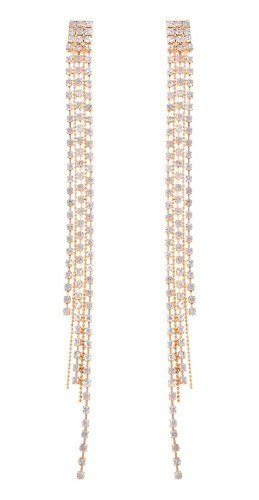 Kolczyki pozłacane, sztyfty, bardzo długie, opadające jasne cyrkonie. Stal szlachetna pozłacana. Wymiary-szer. 1.0, dł. 18.5 cm