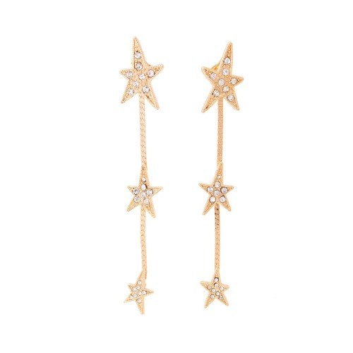 Kolczyki, pozłacane, sztyfty, gwiazdki i cyrkonie. Wymiary- długość 9x 1,5 cm. Ze względu na różne ustawienia monitorów oraz różną jakość wyświetlaczy zastosowanych w urządzeniach mobilnych, kolory przedstawione na zdjęciach mogą nieznacznie różnić się od rzeczywistych. Dokładamy wszelkich starań, aby na stronie Sklepu przedstawiać tylko realne zdjęcia produktów, jak najbardziej zbliżone do rzeczywistości. Warstwa złota naniesiona w metodzie - PVD- napylanie próżniowe jonami tytanu, czy też azotkiem tytanu jest nowoczesną metodą nanoszenia powłok o bardzo dużej trwałości. * Pokryte jest w całości 4 - 8 mikronową warstwą 14K, 18K i 24K złota. * Warstwa złocenia pokryta jest lakierem jubilerskim, który zabezpiecza powłokę złota przed ścieraniem i nadaje wspaniały połysk * Biżuteria wykonana ze stali szlachetnej-należy do grupy stali o strukturze austenitycznej ( podobna chirurgiczna 316 L) : - jest hipoalergiczna i nie uczula, ponieważ nie emituje związków niklu do organizmu - nie koroduje, nie odbarwia się i długo cieszy swoim blaskiem - ścieralność uzależniona od noszenia i od pH ciała - nie wymaga specjalnej konserwacji jak biżuteria ze srebra, czy złota