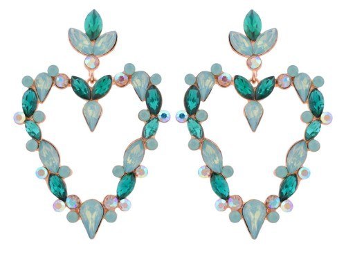 Kolczyki, sztyfty, serca, kolorowe cyrkonie, zielone 2
