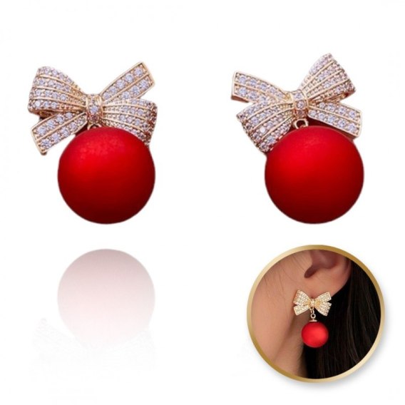 Kolczyki wiszące, efektowne czerwone Kule z kokardami, cyrkonie K1688