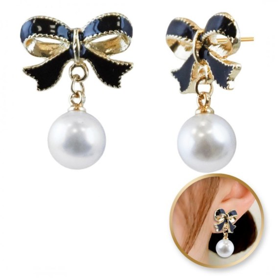 Kolczyki wiszące, efektowne perłowe Kule z kokardkami, K1690