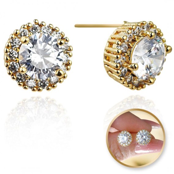Kolczyki ze stali szlachetnej pozłacane 14k złotem, z cyrkoniami KST2859
