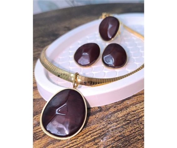 W skład zestawu wchodzi naszyjnik, kolczyki oraz pierścionek, które tworzą spójną i wyjątkową kolekcję biżuterii.
