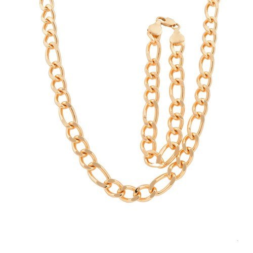 Komplet pozłacany, ozdobny splot- pancerka/figaro. Wymiary:  łańcuszek (24,0 x 1,0 cm), bransoleta ( 22,0 x 1,0 cm). Warstwa złota naniesiona w metodzie - PVD- napylanie próżniowe jonami tytanu, czy też azotkiem tytanu jest nowoczesną metodą nanoszenia powłok o bardzo dużej trwałości. * Pokryte jest w całości 4 - 8 mikronową warstwą 14K, 18K i 24K złota. * Warstwa złocenia pokryta jest lakierem jubilerskim, który zabezpiecza powłokę złota przed ścieraniem i nadaje wspaniały połysk * Biżuteria wykonana ze stali szlachetnej-należy do grupy stali o strukturze austenitycznej ( podobna chirurgiczna 316 L) : - jest hipoalergiczna i nie uczula, ponieważ nie emituje związków niklu do organizmu - nie koroduje, nie odbarwia się i długo cieszy swoim blaskiem - ścieralność uzależniona od noszenia i od pH ciała - nie wymaga specjalnej konserwacji jak biżuteria ze srebra, czy złota Ze względu na różne ustawienia monitorów oraz różną jakość wyświetlaczy zastosowanych w urządzeniach mobilnych, kolory przedstawione na zdjęciach mogą nieznacznie różnić się od rzeczywistych. Dokładamy wszelkich starań, aby na stronie Sklepu przedstawiać tylko realne zdjęcia produktów, jak najbardziej zbliżone do rzeczywistości.