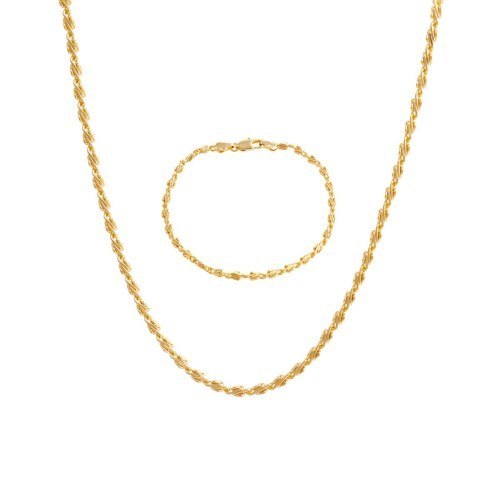 Komplet pozłacany, cieniutkie ogniwa- kosteczka.  Wymiary: łańcuszek ( 21,5 x 0,2 cm), bransoletka ( 20,0 x 0,2 ).   Warstwa złota naniesiona w metodzie - PVD- napylanie próżniowe jonami tytanu, czy też azotkiem tytanu jest nowoczesną metodą nanoszenia powłok o bardzo dużej trwałości. * Pokryte jest w całości 4 - 8 mikronową warstwą 14K, 18K i 24K złota. * Warstwa złocenia pokryta jest lakierem jubilerskim, który zabezpiecza powłokę złota przed ścieraniem i nadaje wspaniały połysk * Biżuteria wykonana ze stali szlachetnej-należy do grupy stali o strukturze austenitycznej ( podobna chirurgiczna 316 L) : - jest hipoalergiczna i nie uczula, ponieważ nie emituje związków niklu do organizmu - nie koroduje, nie odbarwia się i długo cieszy swoim blaskiem - ścieralność uzależniona od noszenia i od pH ciała - nie wymaga specjalnej konserwacji jak biżuteria ze srebra, czy złota Ze względu na różne ustawienia monitorów oraz różną jakość wyświetlaczy zastosowanych w urządzeniach mobilnych, kolory przedstawione na zdjęciach mogą nieznacznie różnić się od rzeczywistych. Dokładamy wszelkich starań, aby na stronie Sklepu przedstawiać tylko realne zdjęcia produktów, jak najbardziej zbliżone do rzeczywistości.
