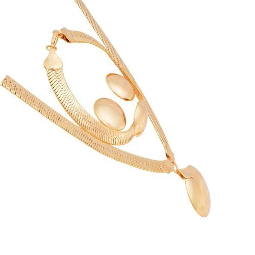 Naszyjnik z kolczykami i bransoletka z ozdobną literą G    Stal szlachetna pozłacana. Gwarancja pozłocenia i jakości. Warstwa złota naniesiona w metodzie - PVD- napylanie próżniowe jonami tytanu, czy też azotkiem tytanu jest nowoczesną metodą nanoszenia powłok o bardzo dużej trwałości. * Pokryte jest w całości 4 - 8 mikronową warstwą 14K, 18K i 24K złota. * Warstwa złocenia pokryta jest lakierem jubilerskim, który zabezpiecza powłokę złota przed ścieraniem i nadaje wspaniały połysk * Biżuteria wykonana ze stali szlachetnej-należy do grupy stali o strukturze austenitycznej ( podobna chirurgiczna 316 L) : - jest hipoalergiczna i nie uczula, ponieważ nie emituje związków niklu do organizmu - nie koroduje, nie odbarwia się i długo cieszy swoim blaskiem - ścieralność uzależniona od noszenia i od pH ciała - nie wymaga specjalnej konserwacji jak biżuteria ze srebra, czy złota Ze względu na różne ustawienia monitorów oraz różną jakość wyświetlaczy zastosowanych w urządzeniach mobilnych, kolory przedstawione na zdjęciach mogą nieznacznie różnić się od rzeczywistych. Dokładamy wszelkich starań, aby na stronie Sklepu przedstawiać tylko realne zdjęcia produktów, jak najbardziej zbliżone do rzeczywistości.