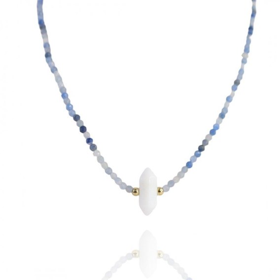 Naszyjnik stal chirurgiczna pozłacana z kryształem górskim 14k NST2051
