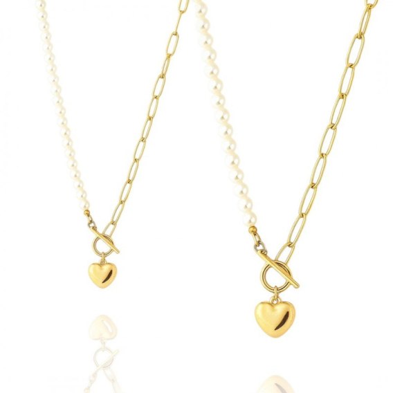 Naszyjnik stal szlachetna pozłacana 14k złotem, SERCE, perły NST2213