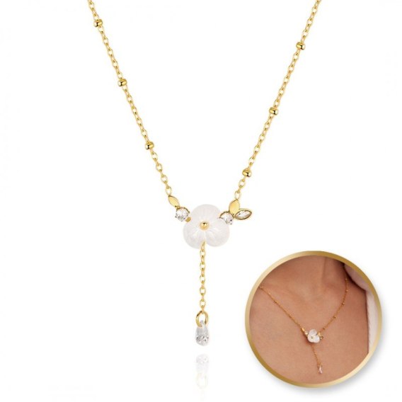 Naszyjnik stal szlachetna pozłacana 14k złotem, biały KWIAT, cyrkonie NST2146