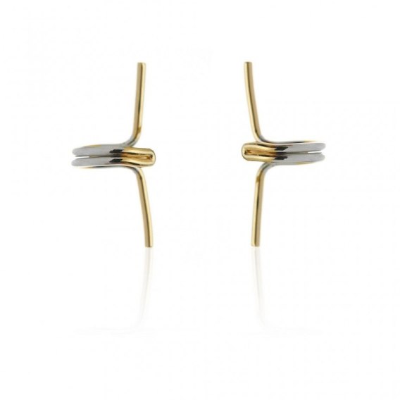 Nausznice podwójne ze stali szlachetnej złoto-srebrne proste platerowane złotem KST1716