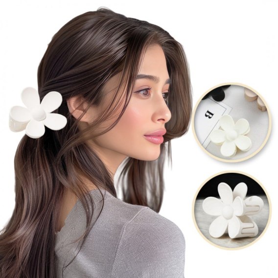 Spinka do włosów klamra XL kwiat biała 7x7,5 cm SP152B