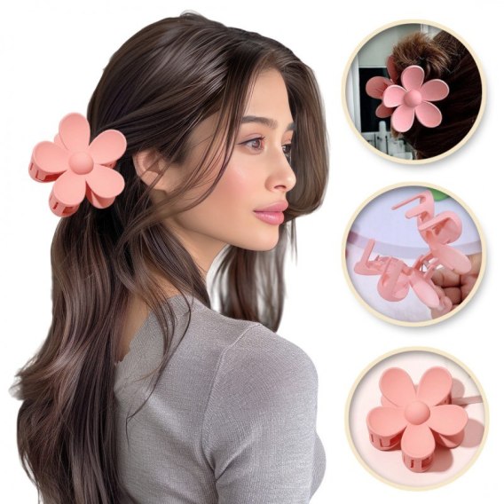 Spinka do włosów klamra XL kwiat różowa 7 x 7,5 cm SP152R