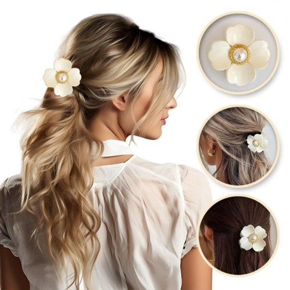 Spinka do włosów, klamra kwiat z perłą biała SP355B