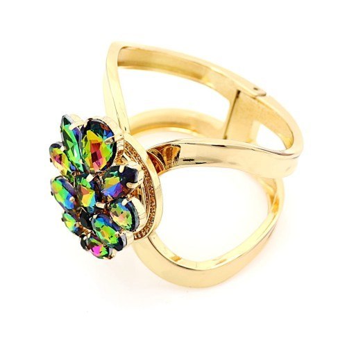 Bransoleta o pięknym zestawie kolorów, duże kształty dodają elegancji, pozwalają czuć się kobiecie zjawiskowo, wyjątkowo. W zależności od padającego światła zmienia swoją barwę.