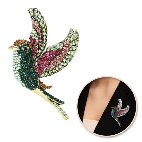 Broszka ozdobna - kolorowy ptak, cyrkonie BZ222