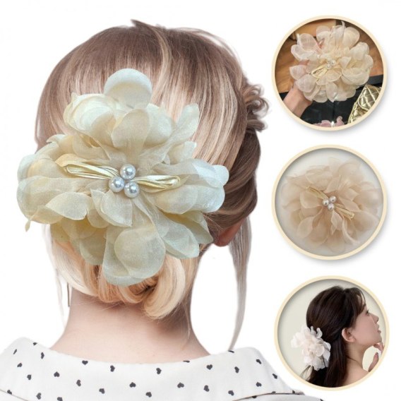 Duża kokarda tiulowa z perełkami, spinka do włosów, klamra SP323B