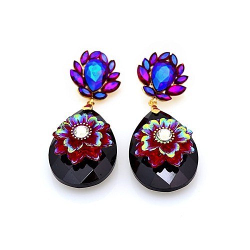 Kolczyki o pięknym zestawie kolorów, duże kształty dodają elegancji, pozwalają czuć się kobiecie zjawiskowo, wyjątkowo. W zależności od padającego światła zmienia swoją barwę. Świecą się kolorami.