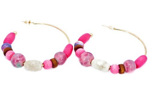 Kolczyki z kolorowych koralików w odcieniach różu w kształcie koła.