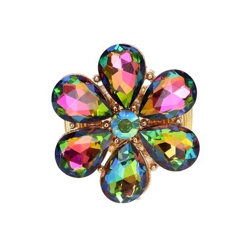 Kolorowy pierścionek z kamieniami Rozmiar uniwersalny  Wymiary ozdoby 3,8 x 3,8 cm   Ze względu na różne ustawienia monitorów oraz różną jakość wyświetlaczy zastosowanych w urządzeniach mobilnych, kolory przedstawione na zdjęciach mogą nieznacznie różnić się od rzeczywistych. Dokładamy wszelkich starań, aby na stronie Sklepu przedstawiać tylko realne zdjęcia produktów, jak najbardziej zbliżone do rzeczywistości.   Stal szlachetna pozłacana. Gwarancja pozłocenia i jakości. Warstwa złota naniesiona w metodzie - PVD- napylanie próżniowe jonami tytanu, czy też azotkiem tytanu jest nowoczesną metodą nanoszenia powłok o bardzo dużej trwałości. * Pokryte jest w całości 4 - 8 mikronową warstwą 14K, 18K i 24K złota. * Warstwa złocenia pokryta jest lakierem jubilerskim, który zabezpiecza powłokę złota przed ścieraniem i nadaje wspaniały połysk * Biżuteria wykonana ze stali szlachetnej-należy do grupy stali o strukturze austenitycznej ( podobna chirurgiczna 316 L) : - jest hipoalergiczna i nie uczula, ponieważ nie emituje związków niklu do organizmu - nie koroduje, nie odbarwia się i długo cieszy swoim blaskiem - ścieralność uzależniona od noszenia i od pH ciała - nie wymaga specjalnej konserwacji jak biżuteria ze srebra, czy złota Ze względu na różne ustawienia monitorów oraz różną jakość wyświetlaczy zastosowanych w urządzeniach mobilnych, kolory przedstawione na zdjęciach mogą nieznacznie różnić się od rzeczywistych. Dokładamy wszelkich starań, aby na stronie Sklepu przedstawiać tylko realne zdjęcia produktów, jak najbardziej zbliżone do rzeczywistości.