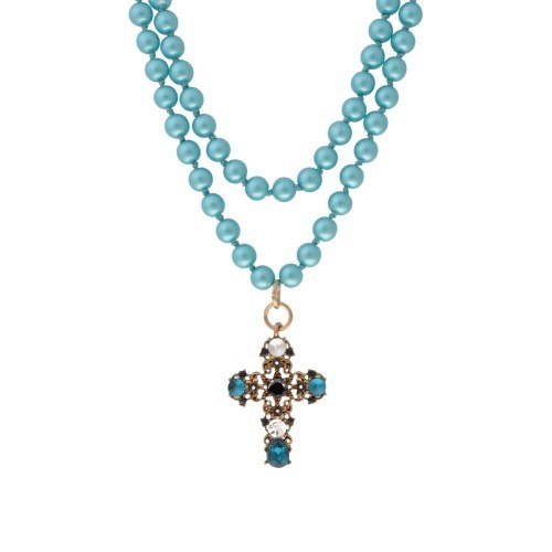 Naszyjnik- korale kolor turkusowy z krzyżem 24