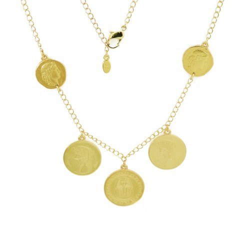 Naszyjnik z monetkami. Stal szlachetna pozłacana. Gwarancja pozłocenia i jakości. Warstwa złota naniesiona w metodzie - PVD- napylanie próżniowe jonami tytanu, czy też azotkiem tytanu jest nowoczesną metodą nanoszenia powłok o bardzo dużej trwałości. * Pokryte jest w całości 4 - 8 mikronową warstwą 14K, 18K i 24K złota. * Warstwa złocenia pokryta jest lakierem jubilerskim, który zabezpiecza powłokę złota przed ścieraniem i nadaje wspaniały połysk * Biżuteria wykonana ze stali szlachetnej-należy do grupy stali o strukturze austenitycznej ( podobna chirurgiczna 316 L) : - jest hipoalergiczna i nie uczula, ponieważ nie emituje związków niklu do organizmu - nie koroduje, nie odbarwia się i długo cieszy swoim blaskiem - ścieralność uzależniona od noszenia i od pH ciała - nie wymaga specjalnej konserwacji jak biżuteria ze srebra, czy złota Ze względu na różne ustawienia monitorów oraz różną jakość wyświetlaczy zastosowanych w urządzeniach mobilnych, kolory przedstawione na zdjęciach mogą nieznacznie różnić się od rzeczywistych. Dokładamy wszelkich starań, aby na stronie Sklepu przedstawiać tylko realne zdjęcia produktów, jak najbardziej zbliżone do rzeczywistości.