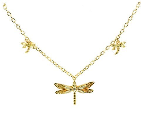 Naszyjnik z piękną dużą zawieszką w kształcie ważki. Na bokach łańcuszka zawieszone są również dwie mniejsze urokliwe ważki. Zawieszki zdobione cyrkoniami. Stal szlachetna pozłacana. Gwarancja pozłocenia i jakości. Warstwa złota naniesiona w metodzie - PVD- napylanie próżniowe jonami tytanu, czy też azotkiem tytanu jest nowoczesną metodą nanoszenia powłok o bardzo dużej trwałości. * Pokryte jest w całości 4 - 8 mikronową warstwą 14K, 18K i 24K złota. * Warstwa złocenia pokryta jest lakierem jubilerskim, który zabezpiecza powłokę złota przed ścieraniem i nadaje wspaniały połysk * Biżuteria wykonana ze stali szlachetnej-należy do grupy stali o strukturze austenitycznej ( podobna chirurgiczna 316 L) : - jest hipoalergiczna i nie uczula, ponieważ nie emituje związków niklu do organizmu - nie koroduje, nie odbarwia się i długo cieszy swoim blaskiem - ścieralność uzależniona od noszenia i od pH ciała - nie wymaga specjalnej konserwacji jak biżuteria ze srebra, czy złota Ze względu na różne ustawienia monitorów oraz różną jakość wyświetlaczy zastosowanych w urządzeniach mobilnych, kolory przedstawione na zdjęciach mogą nieznacznie różnić się od rzeczywistych. Dokładamy wszelkich starań, aby na stronie Sklepu przedstawiać tylko realne zdjęcia produktów, jak najbardziej zbliżone do rzeczywistości.