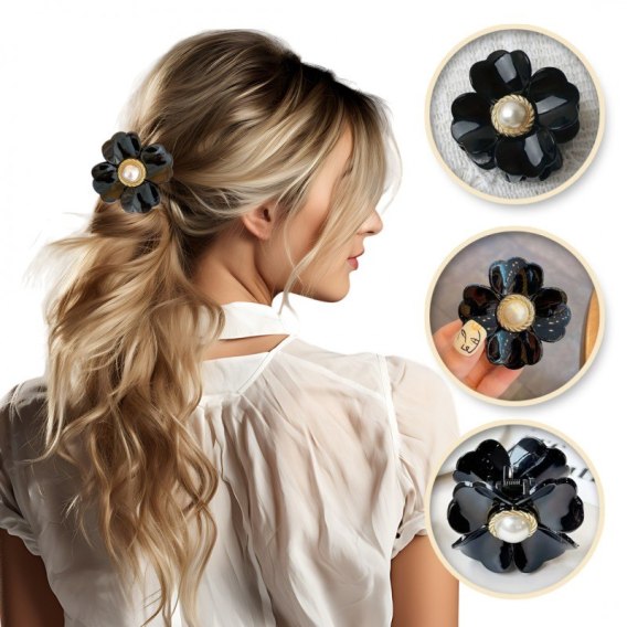 Spinka do włosów, klamra kwiat z perłą czarna SP355CZ