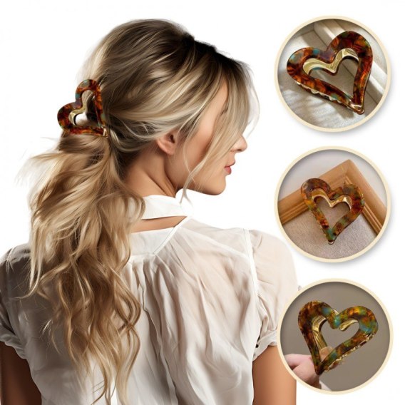 Spinka do włosów, klamra metalowa SERCE panterka zielona 6cm SP341ZIE