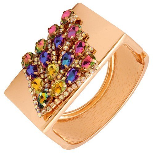 Niezwykle kolorowa bransoletka z kamieniami Wymiary bransoletki średnica 7 cm, szerokość 3,8 cm   Ze względu na różne ustawienia monitorów oraz różną jakość wyświetlaczy zastosowanych w urządzeniach mobilnych, kolory przedstawione na zdjęciach mogą nieznacznie różnić się od rzeczywistych. Dokładamy wszelkich starań, aby na stronie Sklepu przedstawiać tylko realne zdjęcia produktów, jak najbardziej zbliżone do rzeczywistości. Stal szlachetna pozłacana. Gwarancja pozłocenia i jakości. Warstwa złota naniesiona w metodzie - PVD- napylanie próżniowe jonami tytanu, czy też azotkiem tytanu jest nowoczesną metodą nanoszenia powłok o bardzo dużej trwałości. * Pokryte jest w całości 4 - 8 mikronową warstwą 14K, 18K i 24K złota. * Warstwa złocenia pokryta jest lakierem jubilerskim, który zabezpiecza powłokę złota przed ścieraniem i nadaje wspaniały połysk * Biżuteria wykonana ze stali szlachetnej-należy do grupy stali o strukturze austenitycznej ( podobna chirurgiczna 316 L) : - jest hipoalergiczna i nie uczula, ponieważ nie emituje związków niklu do organizmu - nie koroduje, nie odbarwia się i długo cieszy swoim blaskiem - ścieralność uzależniona od noszenia i od pH ciała - nie wymaga specjalnej konserwacji jak biżuteria ze srebra czy złota