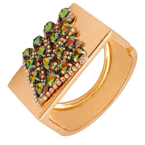 Niezwykle kolorowa bransoletka z kamieniami Wymiary bransoletki średnica 7 cm, szerokość 3,8 cm Ze względu na różne ustawienia monitorów oraz różną jakość wyświetlaczy zastosowanych w urządzeniach mobilnych, kolory przedstawione na zdjęciach mogą nieznacznie różnić się od rzeczywistych. Dokładamy wszelkich starań, aby na stronie Sklepu przedstawiać tylko realne zdjęcia produktów, jak najbardziej zbliżone do rzeczywistości. Stal szlachetna pozłacana. Gwarancja pozłocenia i jakości. Warstwa złota naniesiona w metodzie - PVD- napylanie próżniowe jonami tytanu, czy też azotkiem tytanu jest nowoczesną metodą nanoszenia powłok o bardzo dużej trwałości. * Pokryte jest w całości 4 - 8 mikronową warstwą 14K, 18K i 24K złota. * Warstwa złocenia pokryta jest lakierem jubilerskim, który zabezpiecza powłokę złota przed ścieraniem i nadaje wspaniały połysk * Biżuteria wykonana ze stali szlachetnej-należy do grupy stali o strukturze austenitycznej ( podobna chirurgiczna 316 L) : - jest hipoalergiczna i nie uczula, ponieważ nie emituje związków niklu do organizmu - nie koroduje, nie odbarwia się i długo cieszy swoim blaskiem - ścieralność uzależniona od noszenia i od pH ciała - nie wymaga specjalnej konserwacji jak biżuteria ze srebra czy złota
