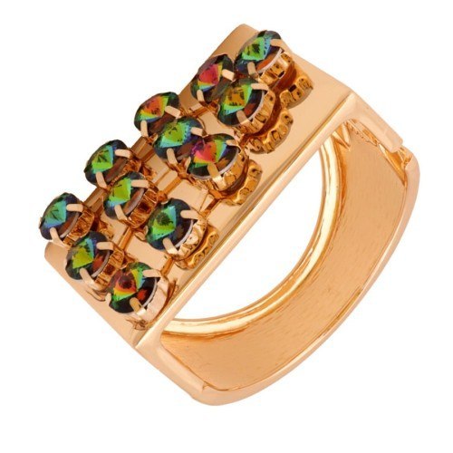 Niezwykle kolorowa bransoletka z kamieniami Wymiary bransoletki średnica 7 cm, szerokość 3,8 cm   Ze względu na różne ustawienia monitorów oraz różną jakość wyświetlaczy zastosowanych w urządzeniach mobilnych, kolory przedstawione na zdjęciach mogą nieznacznie różnić się od rzeczywistych. Dokładamy wszelkich starań, aby na stronie Sklepu przedstawiać tylko realne zdjęcia produktów, jak najbardziej zbliżone do rzeczywistości. Stal szlachetna pozłacana. Gwarancja pozłocenia i jakości. Warstwa złota naniesiona w metodzie - PVD- napylanie próżniowe jonami tytanu, czy też azotkiem tytanu jest nowoczesną metodą nanoszenia powłok o bardzo dużej trwałości. * Pokryte jest w całości 4 - 8 mikronową warstwą 14K, 18K i 24K złota. * Warstwa złocenia pokryta jest lakierem jubilerskim, który zabezpiecza powłokę złota przed ścieraniem i nadaje wspaniały połysk * Biżuteria wykonana ze stali szlachetnej-należy do grupy stali o strukturze austenitycznej ( podobna chirurgiczna 316 L) : - jest hipoalergiczna i nie uczula, ponieważ nie emituje związków niklu do organizmu - nie koroduje, nie odbarwia się i długo cieszy swoim blaskiem - ścieralność uzależniona od noszenia i od pH ciała - nie wymaga specjalnej konserwacji jak biżuteria ze srebra czy złota