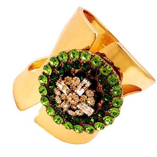 Kolorowa bransoletka z cyrkoniami i z kamieniami Wymiary bransoletki średnica 6,9 cm, szerokość 7,9 cm,  ozdoba średnica 5,2 cm   Ze względu na różne ustawienia monitorów oraz różną jakość wyświetlaczy zastosowanych w urządzeniach mobilnych, kolory przedstawione na zdjęciach mogą nieznacznie różnić się od rzeczywistych. Dokładamy wszelkich starań, aby na stronie Sklepu przedstawiać tylko realne zdjęcia produktów, jak najbardziej zbliżone do rzeczywistości. Stal szlachetna pozłacana. Gwarancja pozłocenia i jakości. Warstwa złota naniesiona w metodzie - PVD- napylanie próżniowe jonami tytanu, czy też azotkiem tytanu jest nowoczesną metodą nanoszenia powłok o bardzo dużej trwałości. * Pokryte jest w całości 4 - 8 mikronową warstwą 14K, 18K i 24K złota. * Warstwa złocenia pokryta jest lakierem jubilerskim, który zabezpiecza powłokę złota przed ścieraniem i nadaje wspaniały połysk * Biżuteria wykonana ze stali szlachetnej-należy do grupy stali o strukturze austenitycznej ( podobna chirurgiczna 316 L) : - jest hipoalergiczna i nie uczula, ponieważ nie emituje związków niklu do organizmu - nie koroduje, nie odbarwia się i długo cieszy swoim blaskiem - ścieralność uzależniona od noszenia i od pH ciała - nie wymaga specjalnej konserwacji jak biżuteria ze srebra czy złota