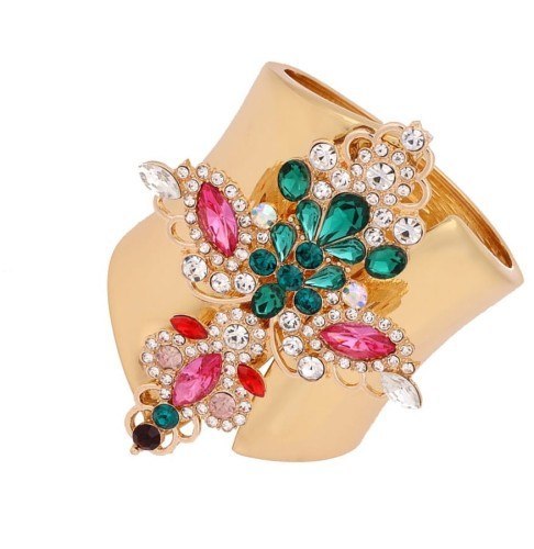 Szeroka bransoletka z kamieniami Szerokość 7,5 cm, średnica 7 cm, ozdoba 9 x 7 cm Stal szlachetna pozłacana. Gwarancja pozłocenia i jakości. Warstwa złota naniesiona w metodzie - PVD- napylanie próżniowe jonami tytanu, czy też azotkiem tytanu jest nowoczesną metodą nanoszenia powłok o bardzo dużej trwałości. * Pokryte jest w całości 4 - 8 mikronową warstwą 14K, 18K i 24K złota. * Warstwa złocenia pokryta jest lakierem jubilerskim, który zabezpiecza powłokę złota przed ścieraniem i nadaje wspaniały połysk * Biżuteria wykonana ze stali szlachetnej-należy do grupy stali o strukturze austenitycznej ( podobna chirurgiczna 316 L) : - jest hipoalergiczna i nie uczula, ponieważ nie emituje związków niklu do organizmu - nie koroduje, nie odbarwia się i długo cieszy swoim blaskiem - ścieralność uzależniona od noszenia i od pH ciała - nie wymaga specjalnej konserwacji jak biżuteria ze srebra, czy złota Ze względu na różne ustawienia monitorów oraz różną jakość wyświetlaczy zastosowanych w urządzeniach mobilnych, kolory przedstawione na zdjęciach mogą nieznacznie różnić się od rzeczywistych. Dokładamy wszelkich starań, aby na stronie Sklepu przedstawiać tylko realne zdjęcia produktów, jak najbardziej zbliżone do rzeczywistości.